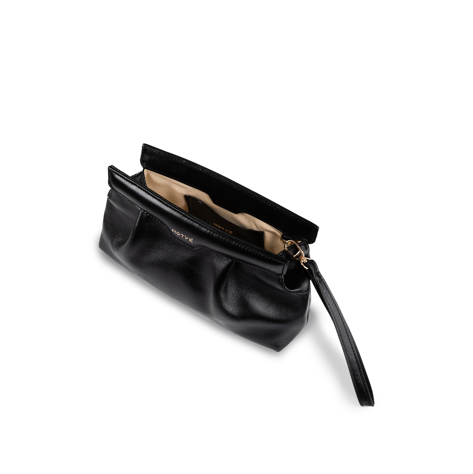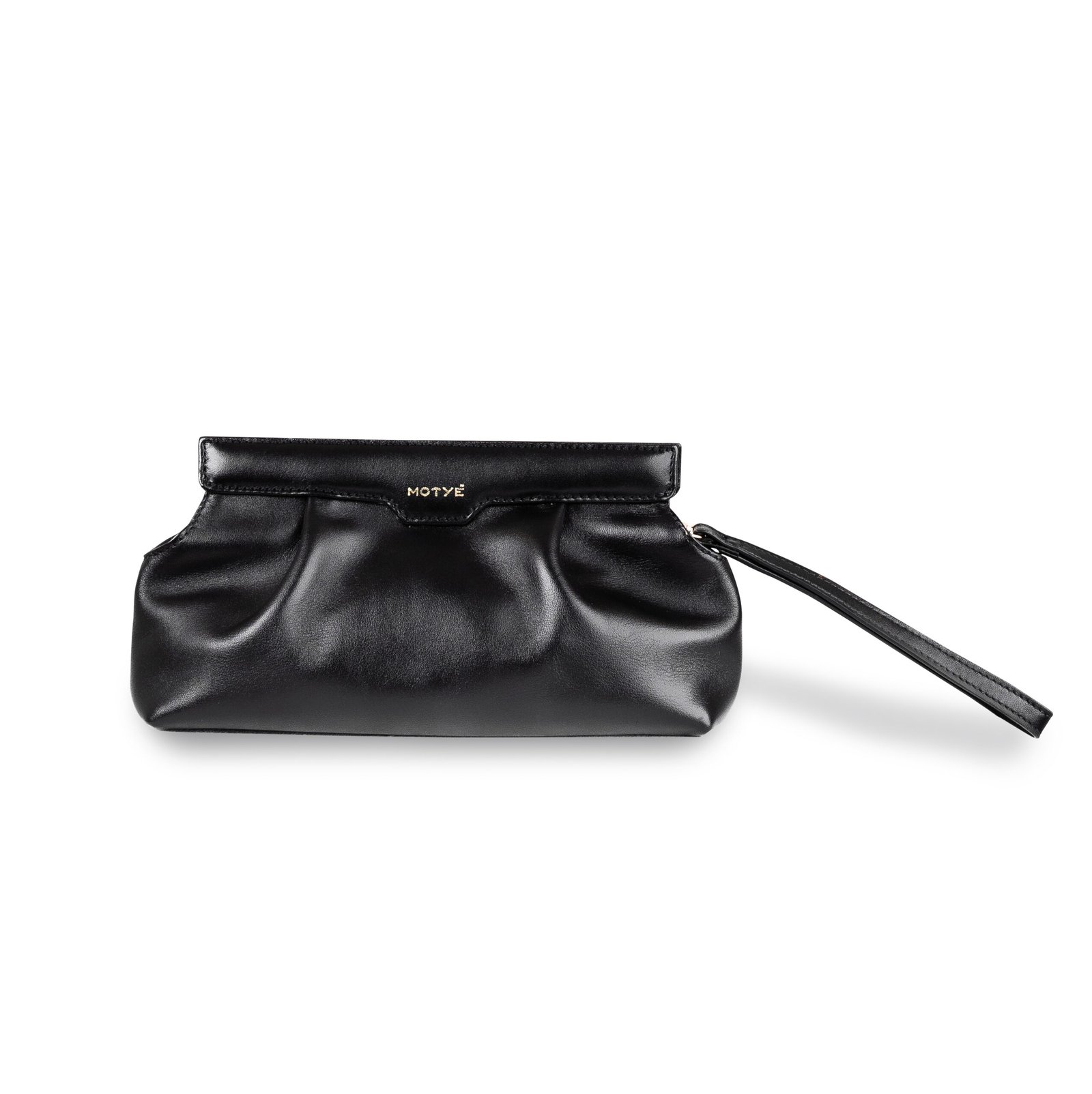 Crafted from premium full-grain leather, the clutch showcases natural textures, refined drapes, and volumes shaped entirely through artisanal technique. The design remains pure and uninterrupted with a discreet gold-film embossed logo, a quiet expression of identity and craftsmanship. Lined with soft beige cotton fabric, the interior offers a natural, understated sense of comfort and simplicity. A magnetic closure maintains the clean exterior while ensuring effortless functionality, while a detachable wrist strap offers versatility for both day and evening wear.